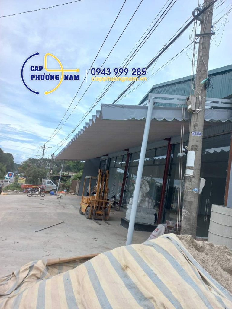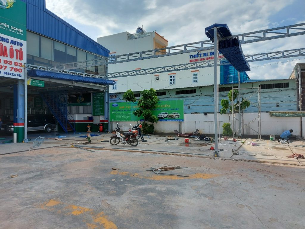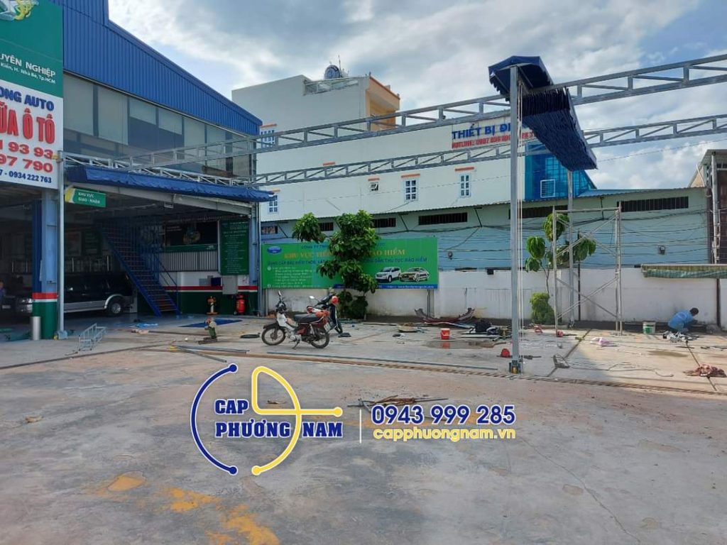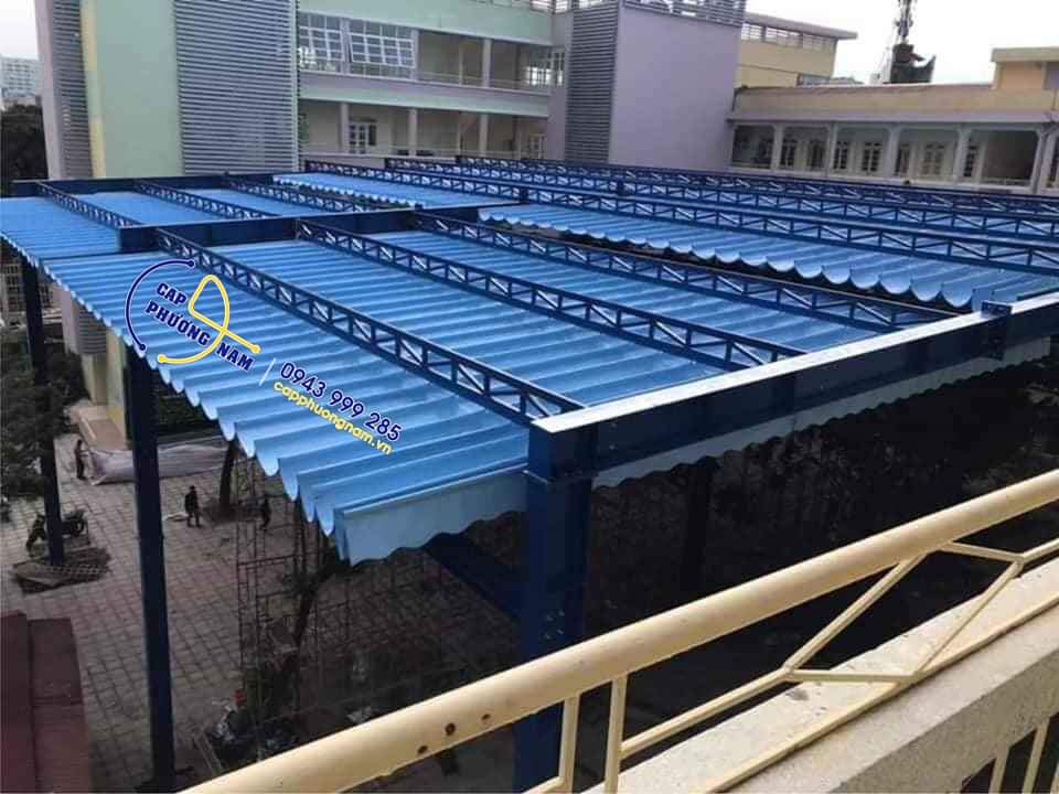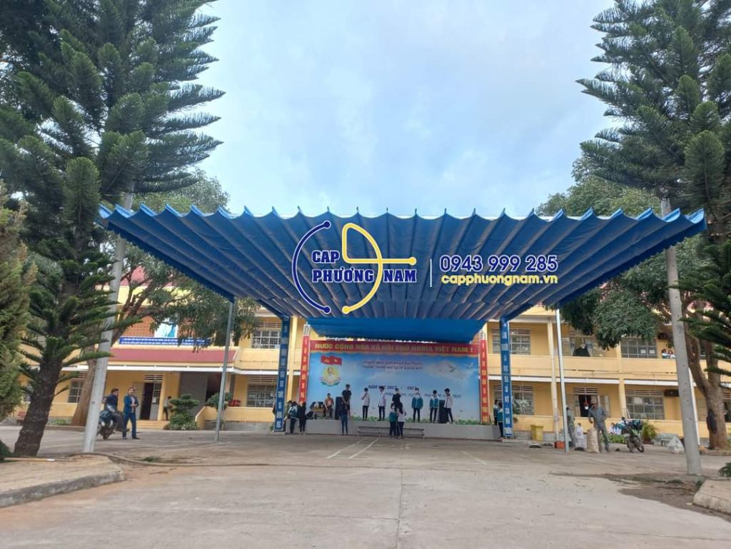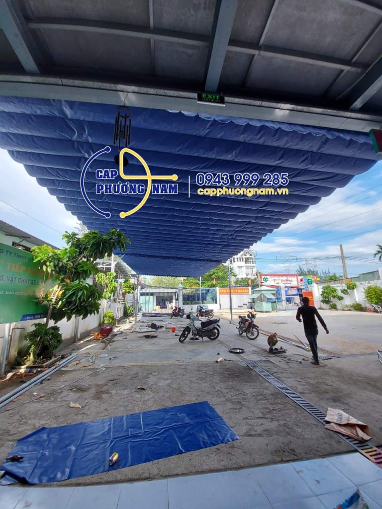 hình ảnh thi công bạt che nắng mưa di động