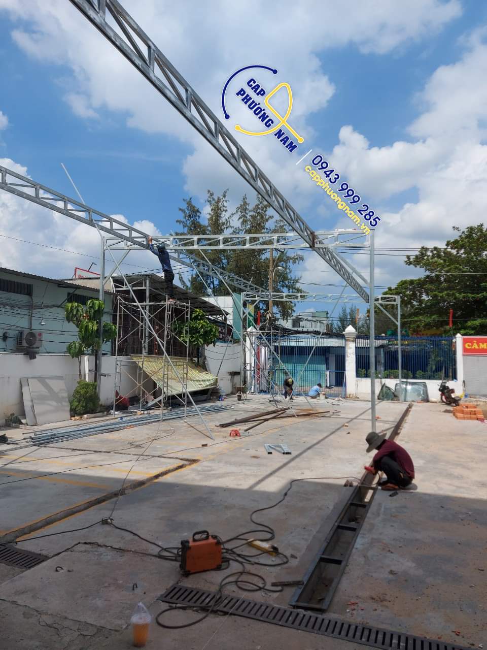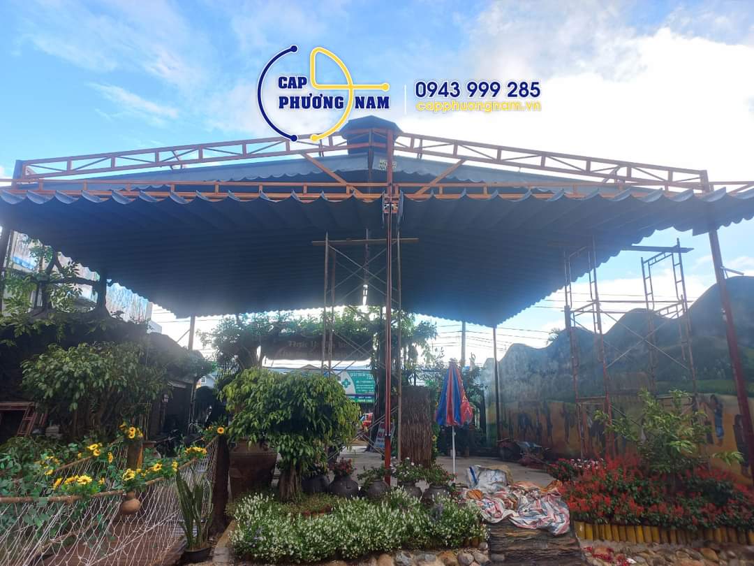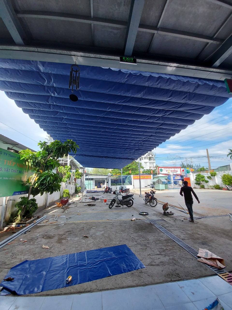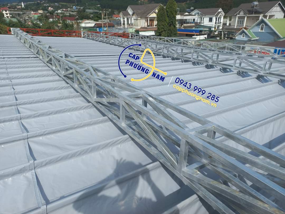 hình ảnh thi công bạt che nắng mưa di động